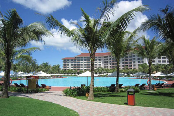 Nhìn từ trên cao xuống, khu nghỉ dưỡng Vinpearl Resort & Spa nổi bật giữa màu xanh của cỏ cây, nước biển nhờ sắc đỏ tươi tắn của mái ngói các ngôi biệt thự. Mỗi căn biệt thự đều được trang bị đầy đủ tiện nghi, rộng rãi, phục vụ du khách có một kỳ nghỉ tuyệt vời bên gia đình và người thân